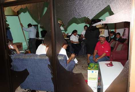 Los manifestantes bloquearon la ruta que conduce de Quezaltepeque a la cabecera municipal, y luego se dirigieron hacia el edificio municipal, donde retuvieron a los trabajadores; a eso de las 15.50 horas se reportó la destrucción de algunas oficinas. Además, los inconformes amenazaron con quemar las instalaciones municipales.