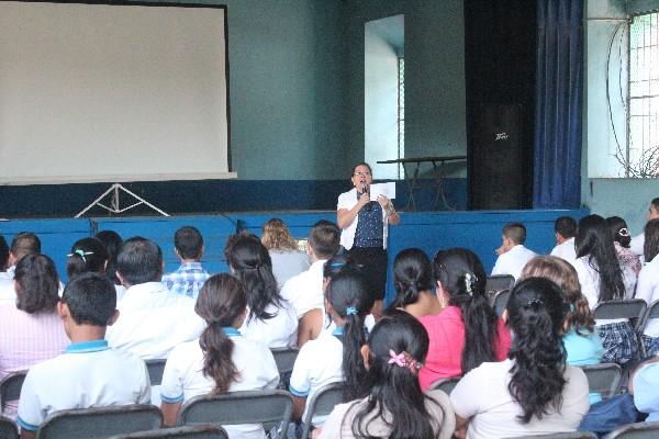 Unos 200 jóvenes de establecimientos educativos de la ciudad de Chiquimula reciben pláticas de prevención contra el VIH/sida, por parte de capacitadores de los ministerios de Salud y Educación.