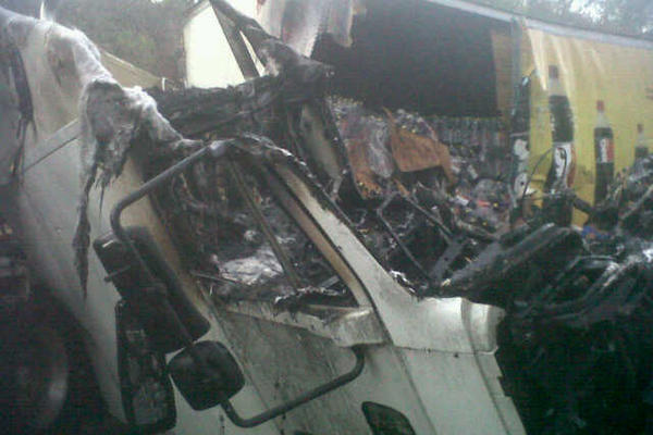 Esta madrugada tres vehículos pesados chocaron y uno de los cuales se incendió y eso interrumpió el paso en la ruta internacional.