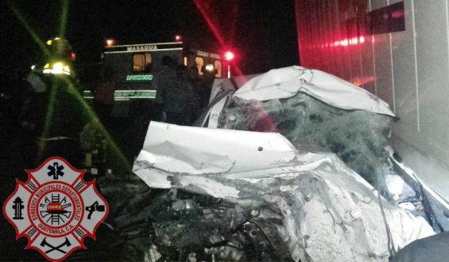 El hecho se registró la madrugada de este sábado en Masagua, Escuintla, el cual provocó tráfico lento en el área, debido al aparatoso accidente.