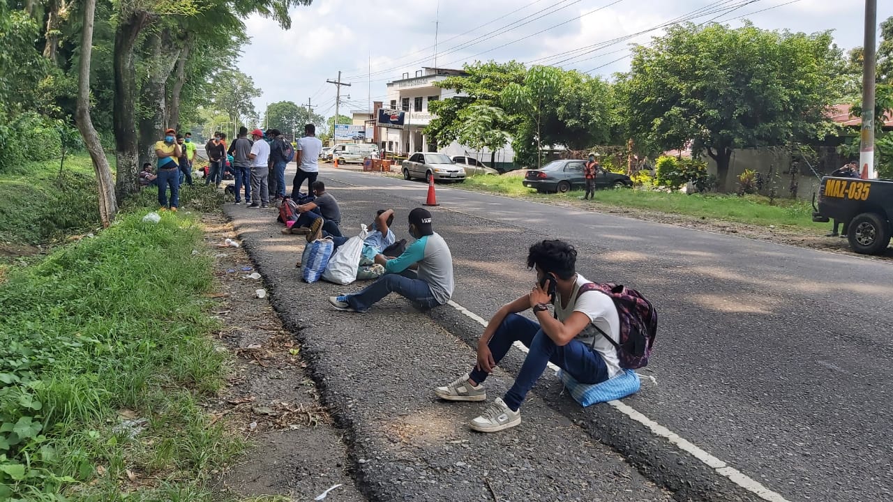 La Policía Nacional Civil detuvo a 29 personas procedentes de la capital que ingresan a Suchitepéquez, su destino era San Antonio Suchitepéquez. (Foto Prensa Libre: Marvin Túnchez)