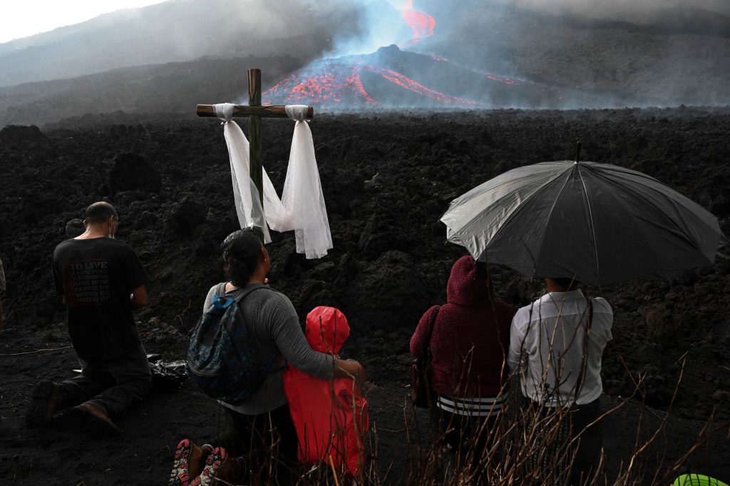 Los pobladores han organizado procesiones y rezos para que cese la actividad del coloso, que pone en riesgo a las comunidades más cercanas. (Foto Prensa Libre: EFE)