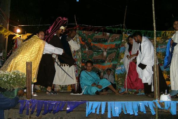 El vecino Francisco Díaz dijo que lo que hace única la celebración es la presentación de escenas que la cofradía instala en la orilla de la carretera por donde pasa el rezo, en los cuales se presentan dramatizaciones basadas en pasajes bíblicos.