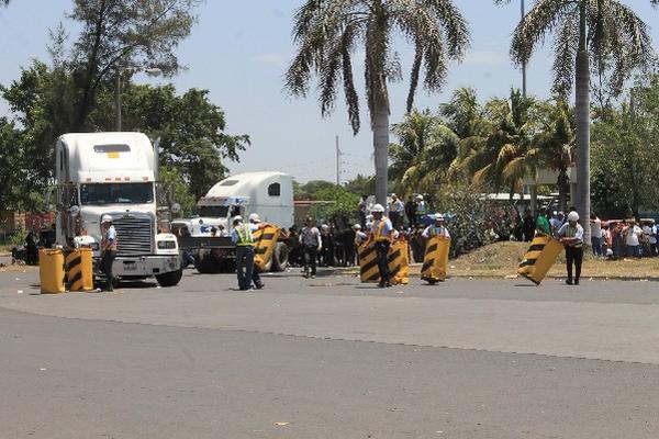 Los pilotos decidieron bloquear los ingresos y salidas del puerto, para lo cual atravesaron tráileres con plataformas y furgones.