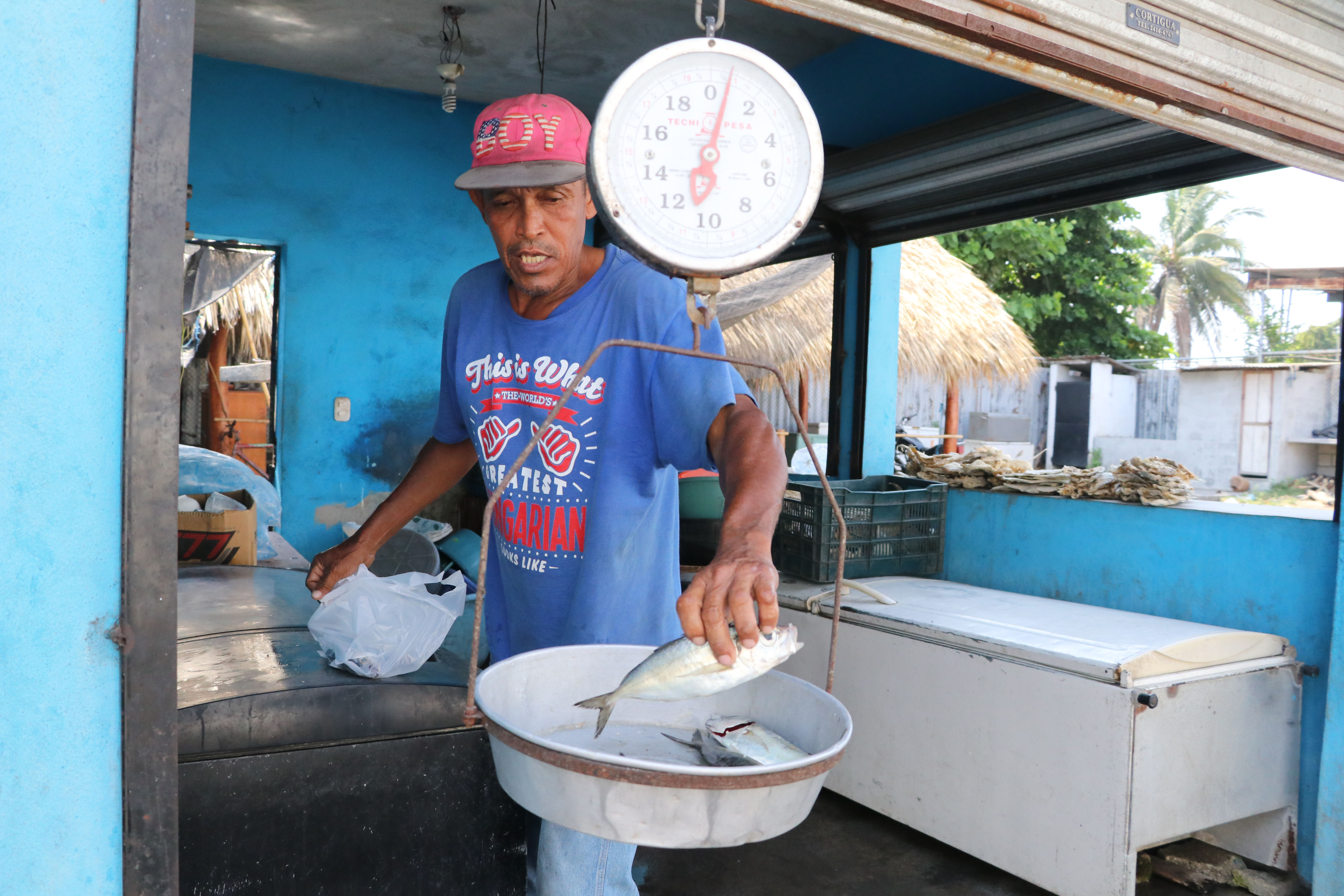Eduardo Ernesto Contreras, vendedor de pescado en Puerto San José, dijo que sus ventas han bajado, pues solo hay clientes locales.
