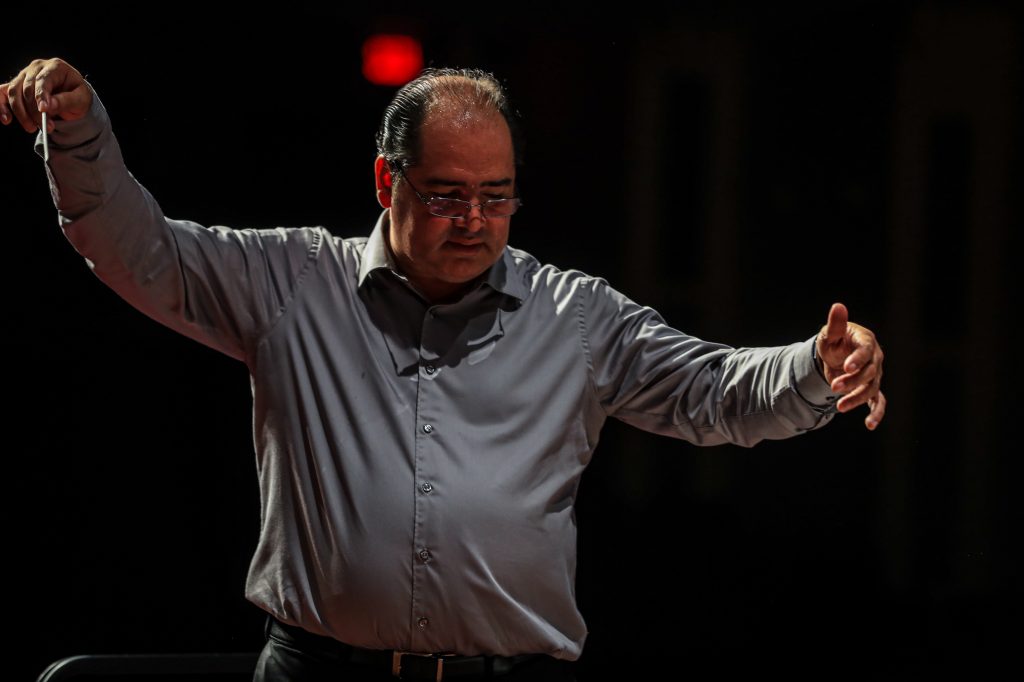 Durante el ensayo, el maestro Herber Morales, estuvo atento a perfeccionar todos los detalles. Fotografía para Prensa Libre: Juan Diego González