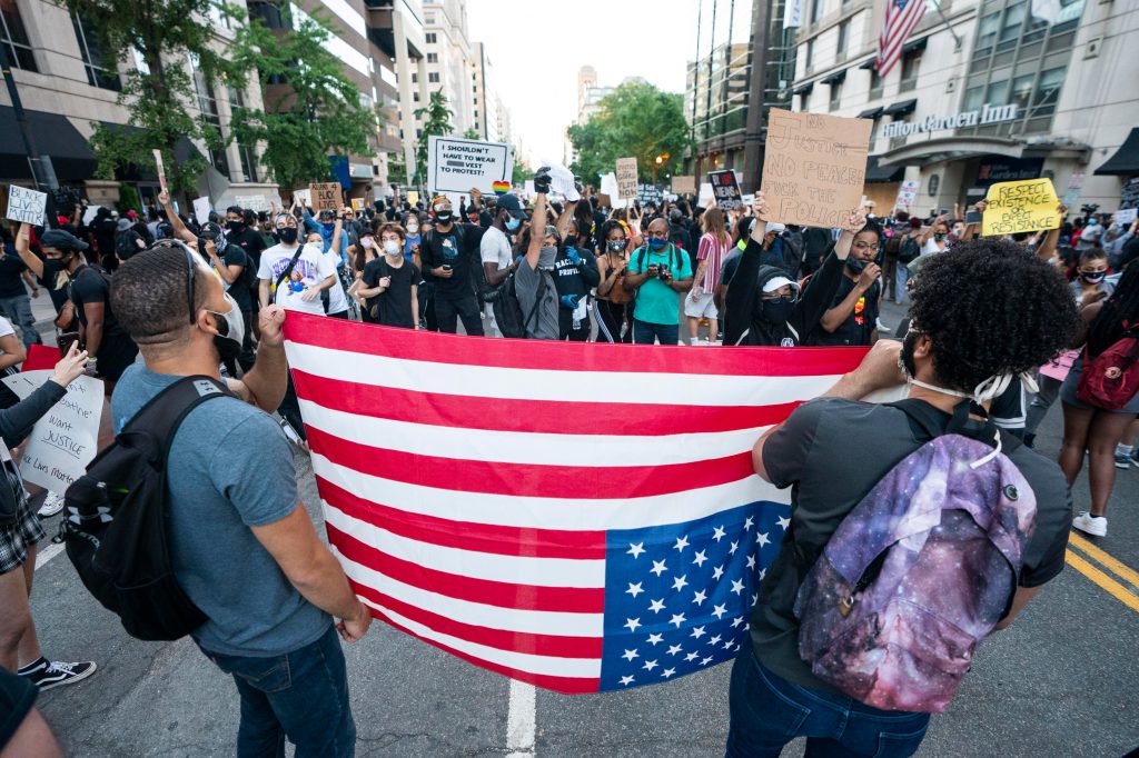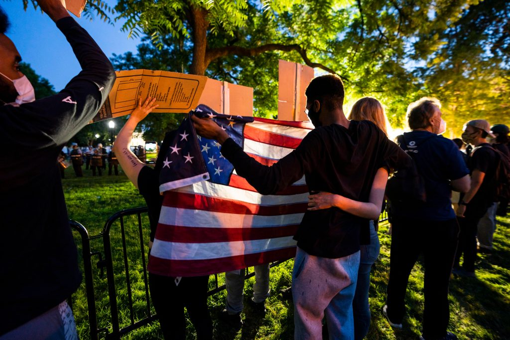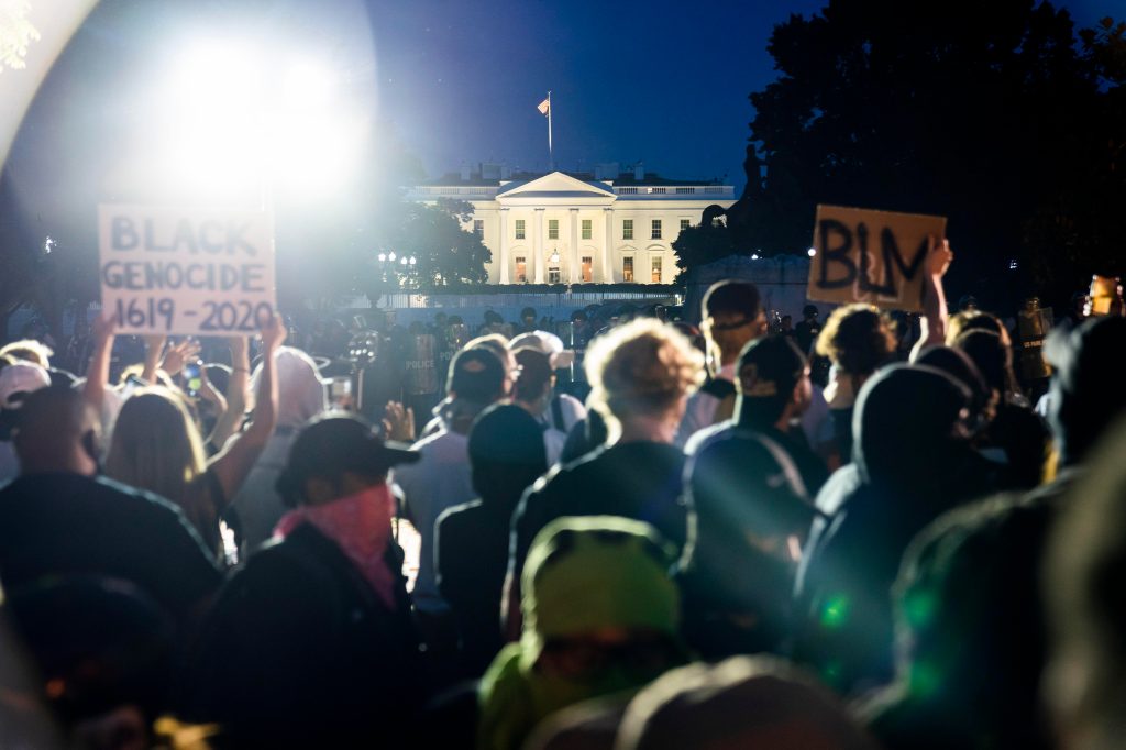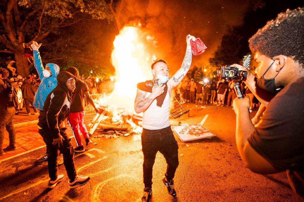 Durante la noche del domingo, varios incendios se registraron en las cercanías de la Casa Blanca. Fotografía Prensa Libre: EFEA raíz de los saqueos e incendios en la capital estadounidense, la alcaldesa Muriel Bowser, anunció un toque de queda a partir de las 11 de la noche hasta las 6 de la mañana del lunes. Fotografía Prensa Libre: EFETras el sexto día consecutivo de protestas en varias ciudades de Estados Unidos, manifestantes le prendieron fuego a la histórica iglesia de San Juan, cerca de la Casa Blanca. Fotografía Prensa Libre: EFEAdemás del “No puedo respirar” en las manifestaciones se han visto puños negros levantados recordando el fenómeno “black power”. Fotografía Prensa Libre: EFELa policía lanzó gases lacrimógenos para dispersar la manifestación que clama en contra de la violencia policial y el racismo en los Estados Unidos. Fotografía Prensa Libre: EFEAlgunos medios locales aseguran que el el viernes en la noche, el primer día que las protestas se hicieron sentir cerca de la Casa Blanca, el presidente Donald Trump fue resguardado por el servicio secreto en el búnker subterráneo. Fotografía Prensa Libre: EFELa policía intentó detener a los protestantes utilizando la fuerza en las afueras de la Casa Blanca. Fotografía Prensa Libre: AFPEl contingente policíaco montó barricadas en las calles aledañas a la Casa Blanca para evitar el acercamiento de los protestantes. Fotografía Prensa Libre: AFPUn participante en la protesta es rociado con leche luego que los gases lacrimógenos le afectaran. Fotografía Prensa Libre: AFPEntre las numerosas protestas en el territorio estadounidense se ha visto la quema de la bandera de los Estados Unidos. Fotografía Prensa Libre: AFPPese a los preparativos de parte de las autoridades, cientos de manifestantes se congregaron a horas de la tarde para marchar desde la Universidad Howard hacia el centro de la ciudad. Fotografía Prensa Libre: EFEEl Parque Lafayette, frente a la Casa Blanca, ha sido un punto de reunión durante éstos días de protesta. Fotografía Prensa Libre: EFEEl primer enfrentamiento se produjo en la calle 14, luego que varios protestantes quemaran un carro de la policía y éstos, respondieran con el lanzamiento de balas de goma. Fotografía Prensa Libre: EFELa Guardia Nacional de Columbia ha sido notificada para que apoye a la Policía Metropolitana en el control de las manifestaciones que se han producido en estos días. Fotografía Prensa Libre: AFP