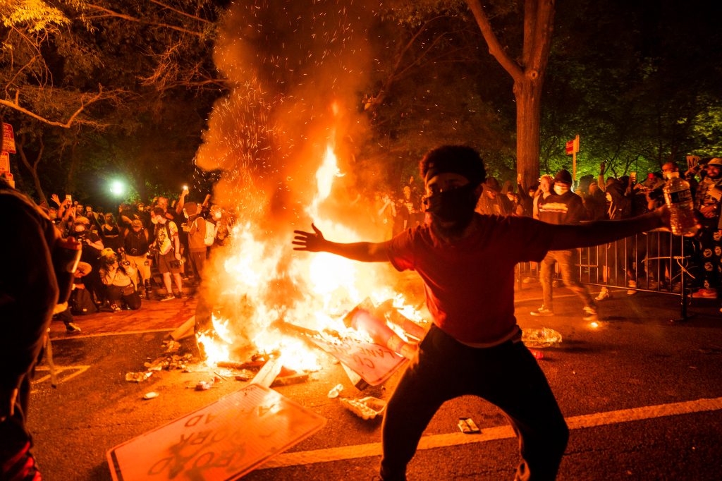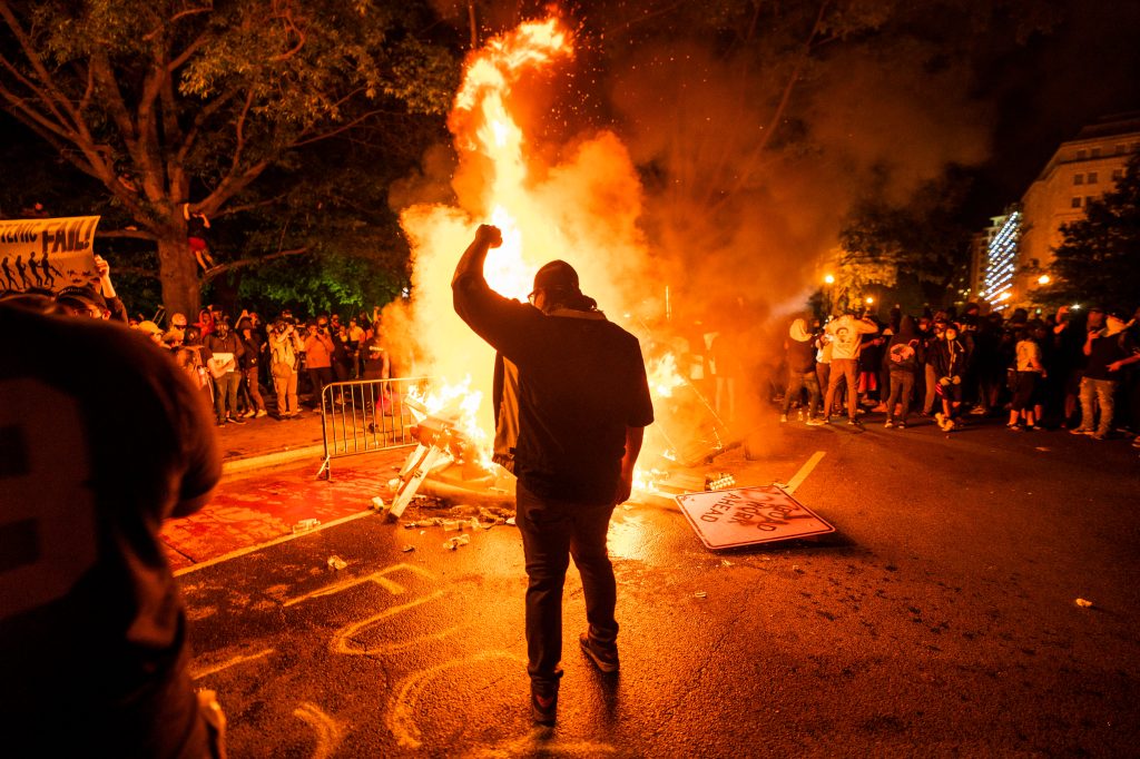 Manifestantes predieron fuego a objetos cerca de la Casa Blanca como protestas por la muerte de George Floyd. Fotografía Prensa Libre: EFE