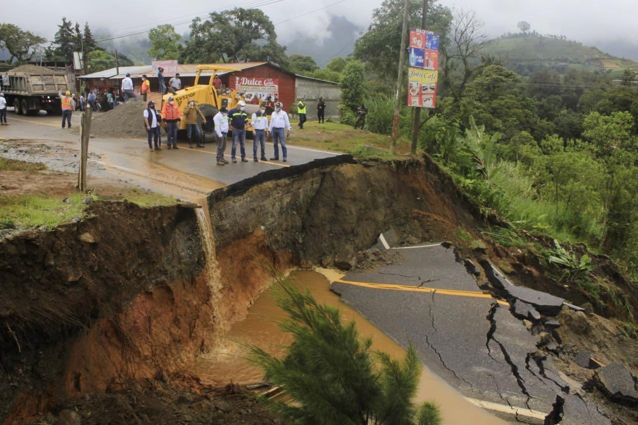 En el km 163, aldea Rincón del Quetzal, Purulhá, Baja Verapaz, ocurrió un socavamiento en el tramo carretero que dejó incomunicados a varios pobladores.