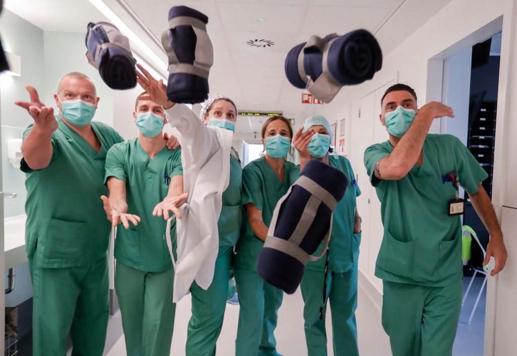 “Protegidos para cuidarte” se lee en uno de los carteles que sostienen los trabajadores de la salud, afuera del Hospital Vall d’Hebron en Barcelona. Fotografía Prensa Libre: Pau Barrena / AFPEn Yemen, una enfermera prepara una vacuna antes de administrarla a un niño, durante la celebración internacional del Día de la enfermera. Fotografía Prensa Libre: EFEUn mural dedicado al personal de salud es pintado por “Art of Change” y artistas de Ahla Fawda en Beirut. Fotografía Prensa Libre: Joseph Eid / AFPEnfermeras de Líbano reciben un pastel y un ramo de flores por un grupo de protestantes anti-gobierno durante la conmemoración en Beirut. Fotografía Prensa Libre: Joseph Eid / AFPEnfermeros y asistentes de salud aplauden a la interpretación de la violinista italiana, Fiamma Flavia Paolucci, por la celebración del Día de la enfermera, en el hospital Tor Vergata, Roma. Fotografía Prensa Libre: Tiziana Fabi / AFPDetrás de una ventana, personal del hospital Tor Vergata, observa la interpretación de una violinista italiana para celebrar la profesión que es clave ante el nuevo coronavirus. Fotografía Prensa Libre: Tiziana Fabi / AFPEnfermeros belgas reciben frazadas como regalo por el Día Internacional de la enfermera en el hospital Iris Sud, en Bruselas. Fotografía Prensa Libre: Stephanie Lecocq / EFEEquipo de salud celebra el Día Internacional de la enfermera en las afueras del hospital de gobierno en Beirut, esta celebración se realiza para conmemorar a la enfermera británica Florence Nightngale, quien fue considerada la creadora de la carrera profesional. Fotografía Prensa Libre: Nabil Mounzer / EFEEn Londres, respetando el distanciamiento, varias enfermeras salieron del hospital St. Thomas para celebrar las contribuciones que las enfermeras hacen a la sociedad en medio de la pandemia del coronavirus. Fotografía Prensa Libre: EFEEnfermeras del hospital Chennai, decoran una fotografía de Florence Nightingale, para conmemorar la vida de quien fundó la profesión de enfermería. Fotografía Prensa Libre: Arun Sankar / AFPEntre rezos y candelas, enfermeras del hospital Rajiv Gandhi en Chennai, celebran el Día Internacional de la enfermera. Fotografía Prensa Libre: Arun Sakar / AFPEn el país donde se desarrolló el coronavirus, enfermeras realizan un juramento durante la ceremonia que se llevó a cabo en el hospital Tongji en Wuhan. Fotografía Prensa Libre: EFEEn la capital de Sri Lanka, Colombo, enfermeras realizan una oración en la ceremonia de conmemoración a Florence Nightingale. Fotografía Prensa Libre: Ishara Kodikara / AFP