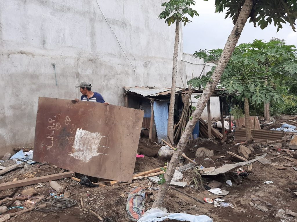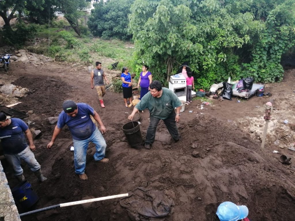 Las casas quedaron soterradas, hasta un metro de tierra y rocas quedó dentro de las viviendas. Fotografía: María Reneé Barrientos Gaytan