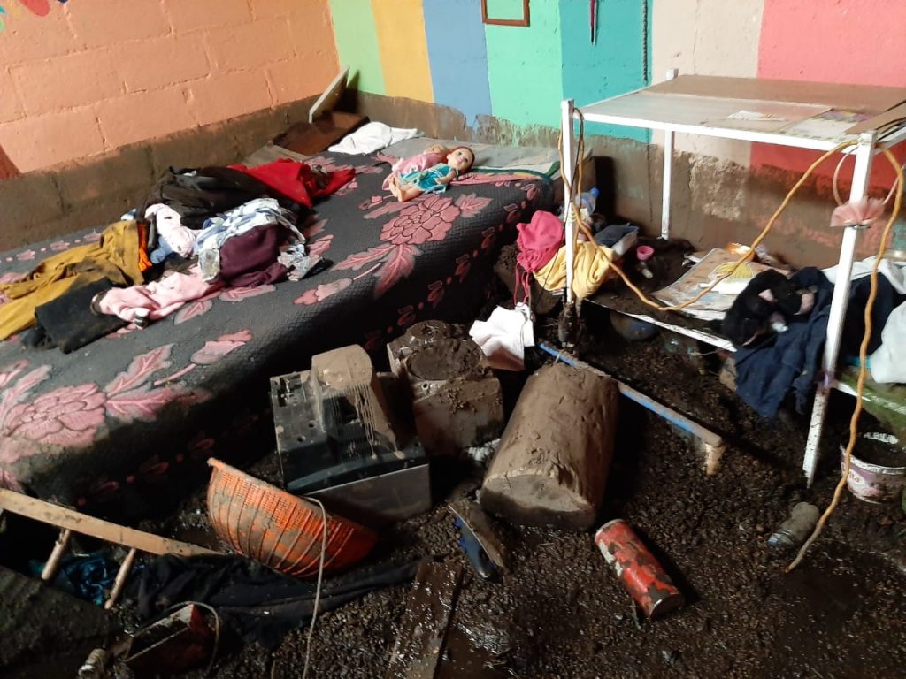 El lodo entró a las casas y alcanzó alturas entre un metro y medio metro. Fotografía Prensa Libre: María Reneé Barrientos.