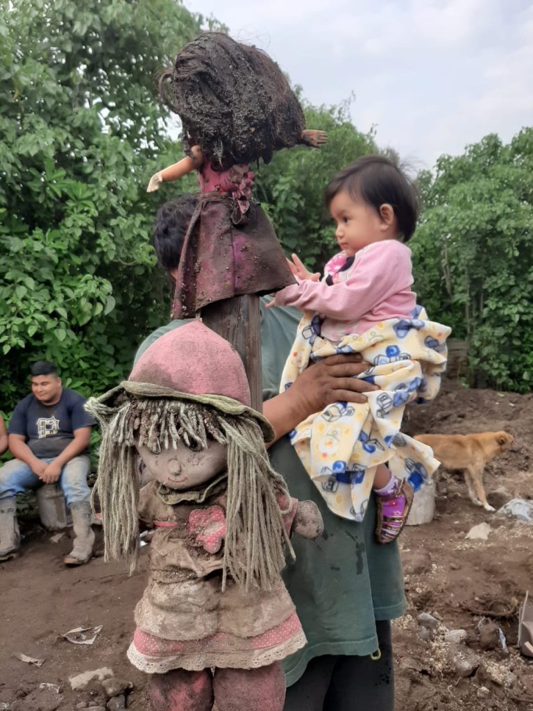 Una bebé se quedó sin sus muñecas favoritas debido al deslave que dejó su casa inundada. Foto Prensa Libre: Andrea Domínguez.