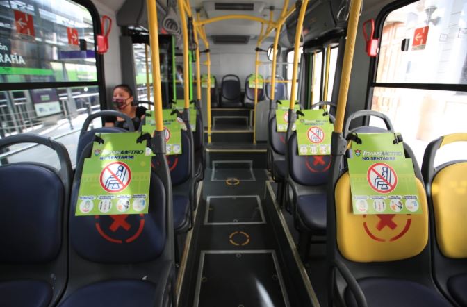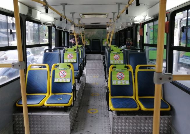 Las unidades llevan señalización en los asientos para que el usuario se entere cuál puede utilizar y guardar el distanciamiento social.