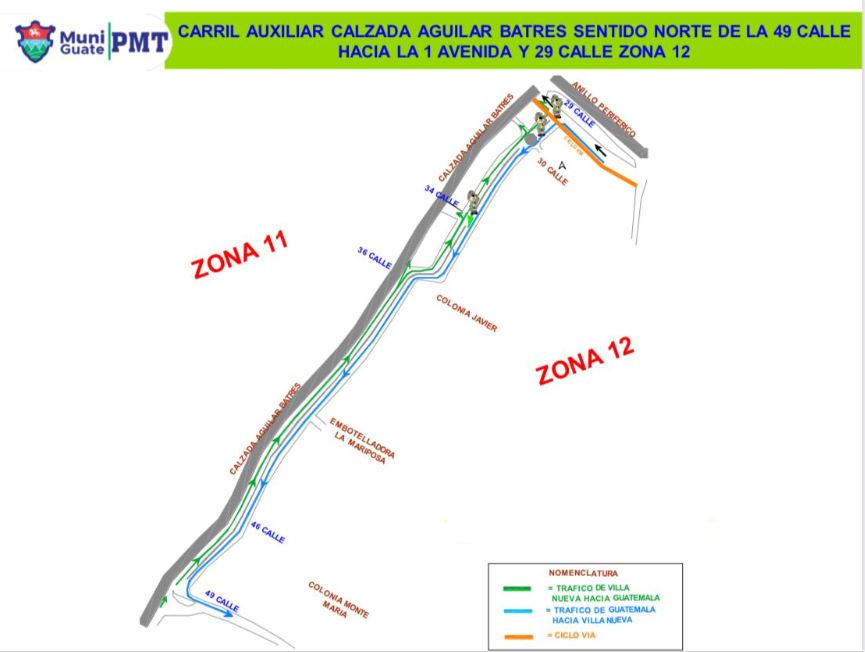 Este carril abarcará 3.2 kilómetros desde la 49 calle y 2 avenida de la zona 12 de Villa Nueva, hasta la 29 calle 1 avenida zona 12 de la ciudad de Guatemala.