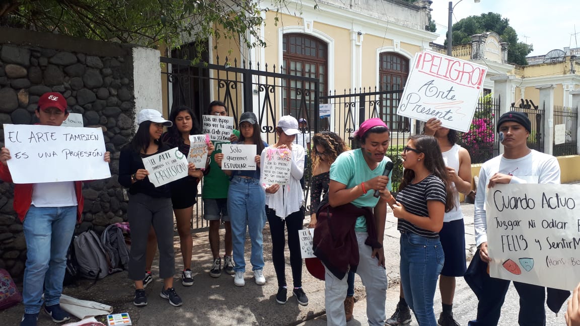 Con cartel en los que se leen frases como “El arte también es una profesión”, “Todo lo que puedas imaginar es real” y “La música es una expresión del alma”, los estudiantes cantaron y gritaron para hacer ver su descontento ante la falta de atención de las autoridades de la Universidad de San Carlos de Guatemala para poner fin a los problemas que, según ellos, padecen desde hace varios años.