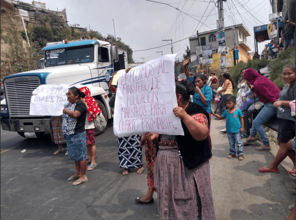 Vecinos piden que el Ministerio de Educación solucione el problema de falta de maestros.(Prensa Libre: cortesía Dalia Santos)