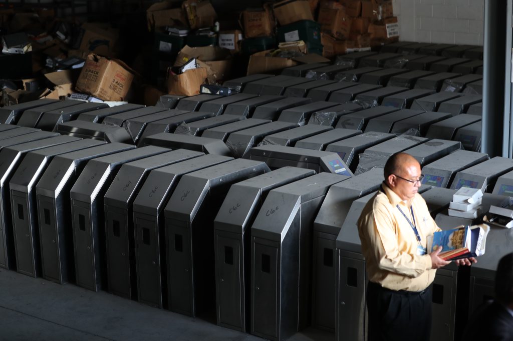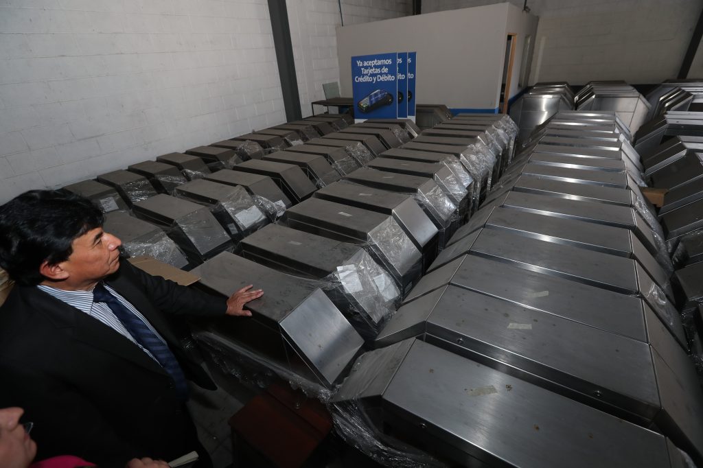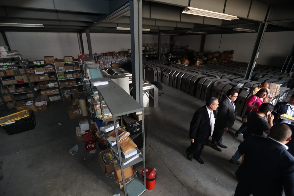 El juez Undécimo, Eduardo Cojulún, revisa la bodega del Transurbano donde se encuentra equipo en mal estado.