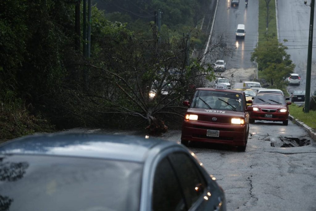 Fuertes lluvias provocan varias caídas de árboles, inundaciones y hundimientos en distintas zonas de Mixco.