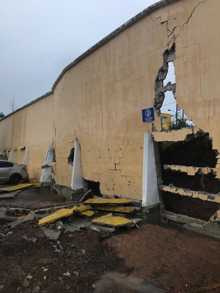 Los muros de un condominio ubicado en la zona 4 de Mixco, se destruyó por las fuertes correntadas. Fotografía Prensa Libre: Cortesía