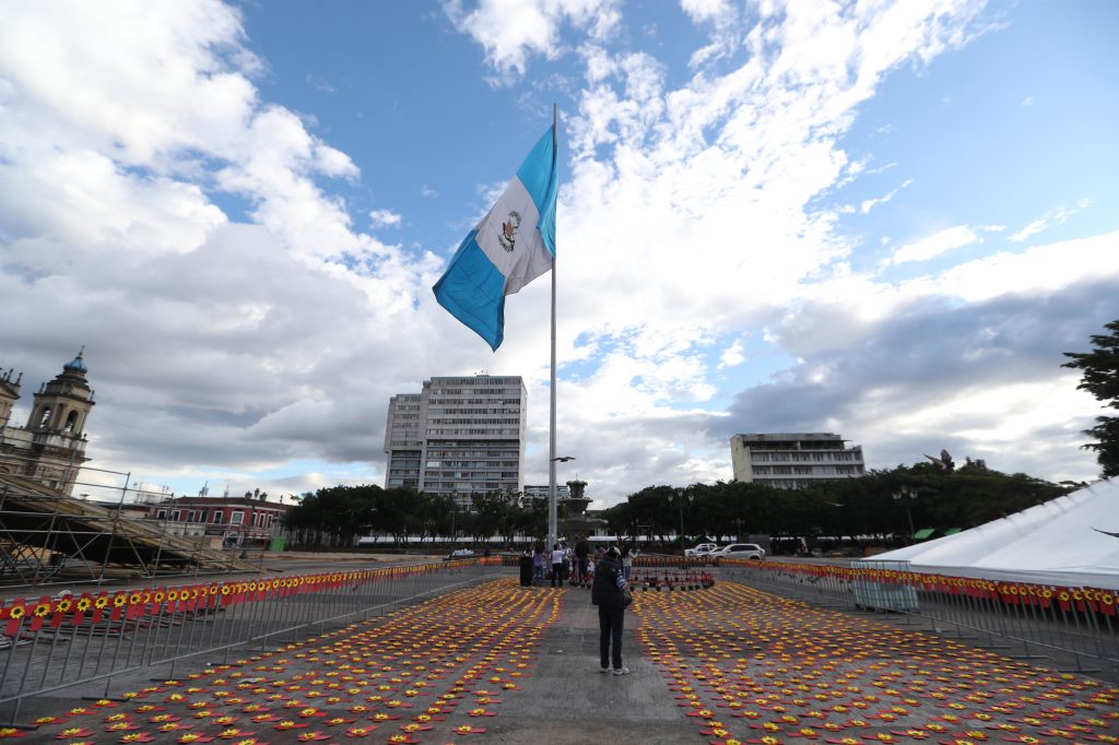 Las cruces fueron colocadas en la Plaza de la Constitución, en memoria por las niñas del Hogar Virgen de la Asunción, quienes cumplen 32 meses de su muerte. Fotografía Prensa Libre: Esbin Garcia