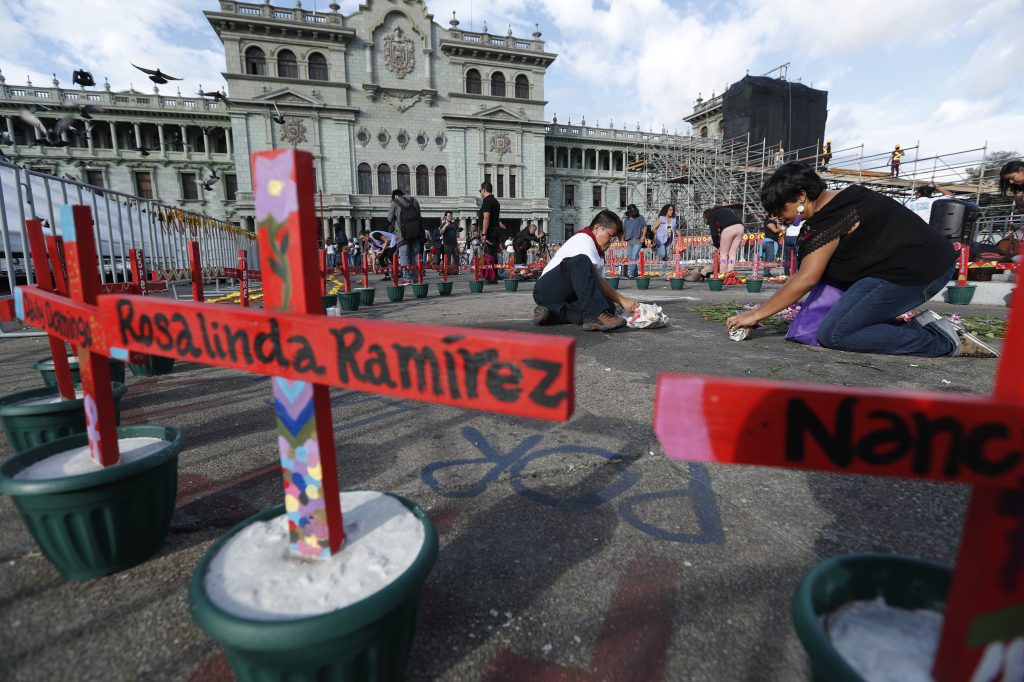 El colectivo Unión Nacional de Mujeres Guatemaltecas coloca 2,500 cruces, por cada mujer que murió de forma violenta en el país, como acción para exigir justicia y por las 41 niñas del Hogar Virgen de la Asunción. La protesta se llevó acabo frente al Palacio Nacional de la Cultura.