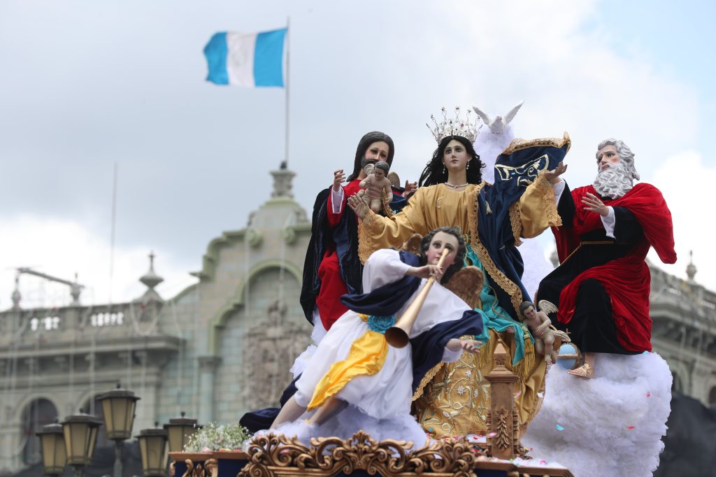 La imagen de la Virgen de la Asunción recorre las calles del Centro Histórico, durante los festejos del 243 aniversario de la fundación de la Ciudad de Guatemala.