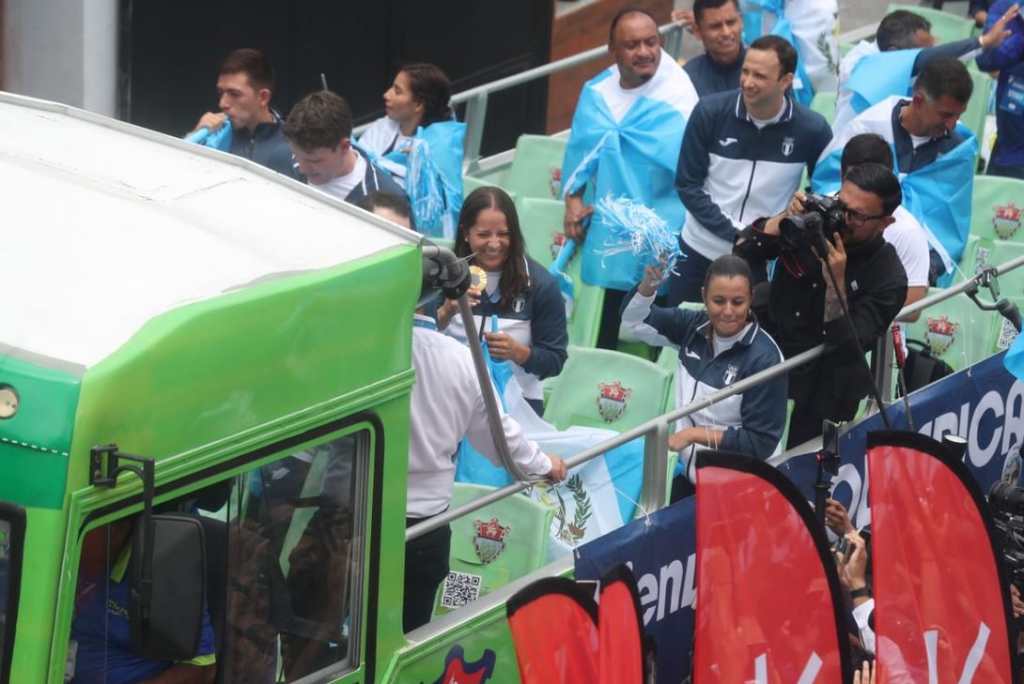La caravana con los atletas recorrió al menos siete puntos de la ciudad de Guatemala hasta llegar a un hotel, donde brindan una conferencia de prensa.