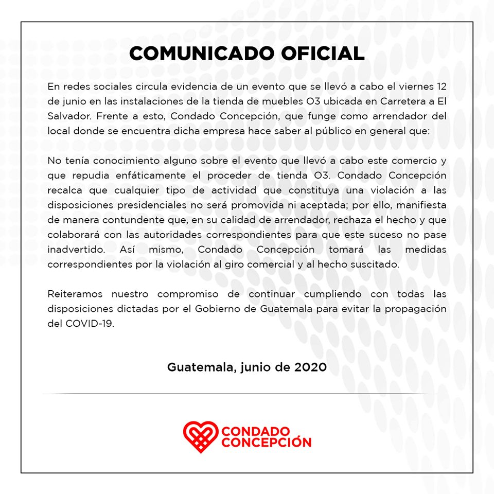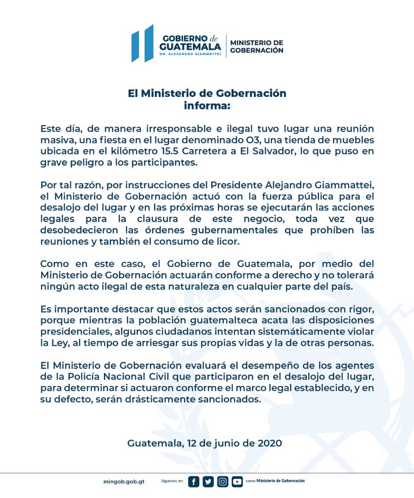“Es importante destacar que estos casos serán sancionados con rigor, porque mientras la población guatemalteca acata las disposiciones presidenciales, algunos ciudadanos intentan sistemáticamente violar la ley, al tiempo de arriesgar sus propias vidas y la de las otras personas”, dice la misiva.