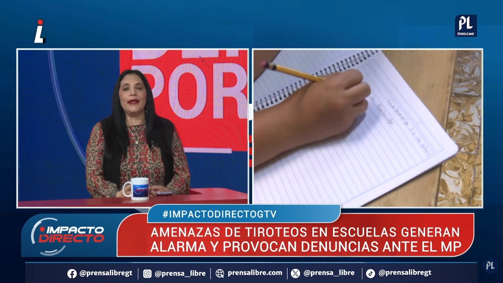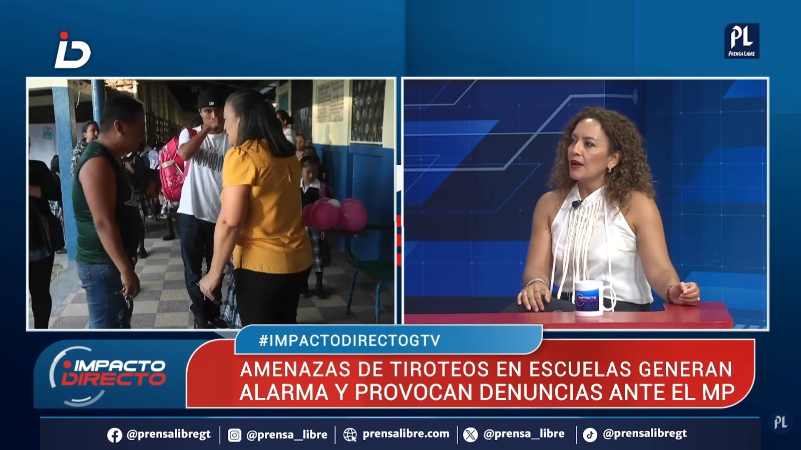 Durante el programa Impacto Directo, de Guatevisión, analistas abordaron las alertas por supuestos tiroteos en escuelas y colegios, luego de que el Ministerio Público (MP), la Policía Nacional Civil (PNC) y el Ministerio de Educación (Mineduc) reportaran denuncias, incidentes en 11 centros educativos y acciones para identificar a quienes originaron o difundieron los mensajes.