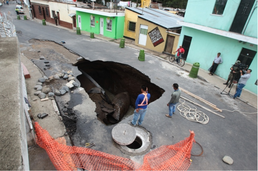 El 29 de octubre de 2018 se formó un agujero frente a la casa número 60 de la colonia Pablo Sexto, en la vía principal que conecta hacia Belén y la calzada San Juan.