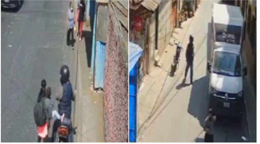 Sorprendidas, las víctimas del asalto salen corriendo buscando resguardo hacia sus viviendas.