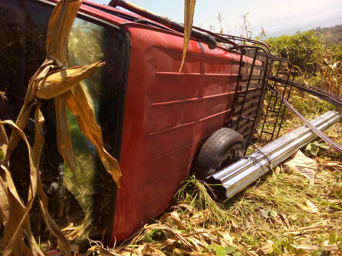 Aún no se conocen las posibles causas del percance. La unidad quedó volcada en un sembradío de maíz.