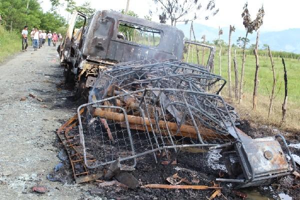 Los vehículos que fueron incendiados son el picop con placas P711BTQ, la camioneta agrícola P196BPJ y un camión que transportaba camas.