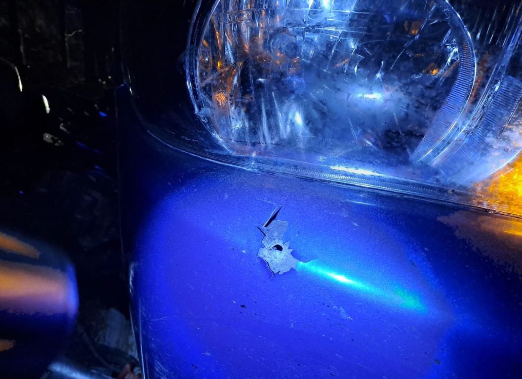 La unidad policial quedó con perforaciones de bala.