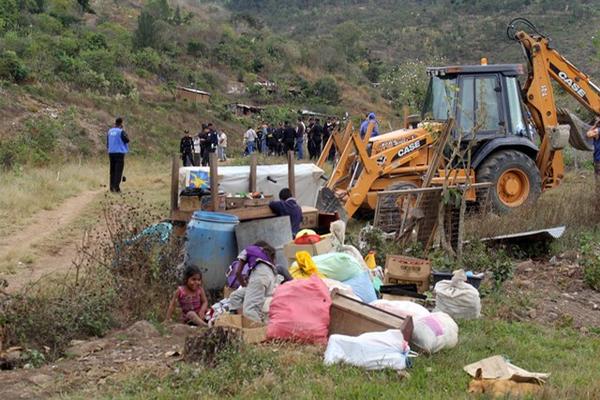 Al lugar fue enviada maquinaria para derribar las viviendas que fueron construidas con adobe y destruir los sembradíos que tenían los supuestos invasores