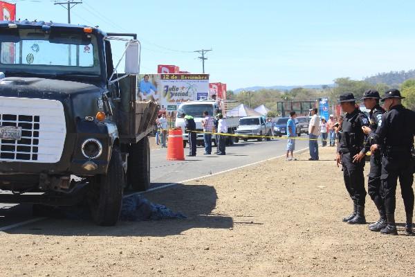 Jesús García Godoy, de 50 años, murió, y cinco de sus familiares resultaron lesionados ayer al haber sido atropellados por un camión, frente a la feria instalada en el campo de la aldea Cerro Gordo, Jutiapa, dijeron Bomberos Voluntarios.