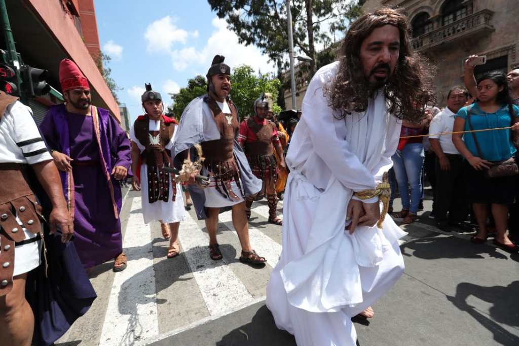 En Quetzaltenango, durante la mañana un grupo realizó un viacrucis en el que mostraron varios momentos previos a la crucifixión de Jesús.