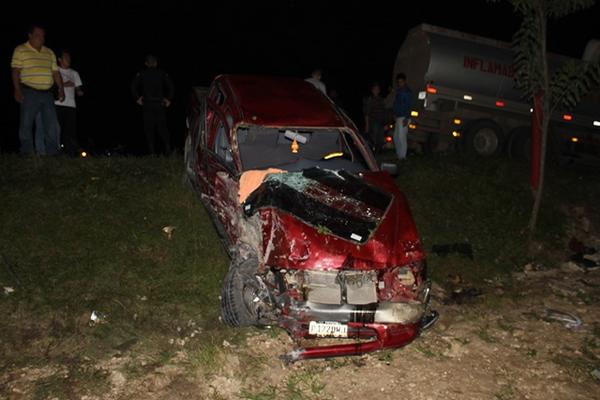Vecinos indicaron que el camión se dirigía hacia La Libertad, Petén, y que el piloto del otro automóvil se descontroló en la curva y colisionó de frente.