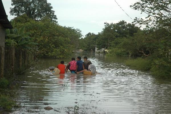 Desde hace cinco días, 125 casas de la aldea Las Cruces, La Libertad, Petén, están anegadas, debido a la constante lluvia.