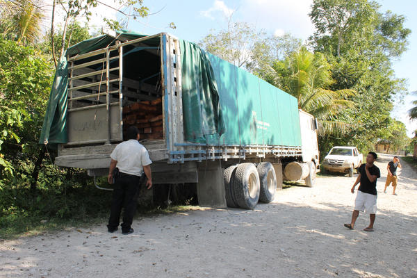 Dentro del camión se encontraron 11.91 metros cúbicos (cinco mil pies de madera) entre cedro y caoba valorada en Q85 mil 850, acondicionado para su traslado.