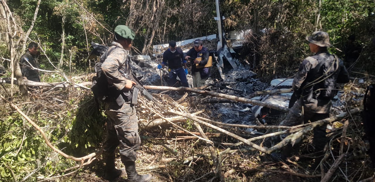 Luego de la detección de la traza ilegal de la avioneta, tarea que correspondió a la Fuerza Aérea Guatemalteca (FAG), el Ejército movilizó unidades para asegurar el área. Durante la jornada llegaron vía aérea agentes del Ministerio Público (MP) para recoger indicios del hallazgo y ordenaron el traslado de los restos a la morgue del Instituto Nacional de Ciencias Forenses (Inacif).