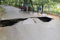 Indicó que el primer agujero que se formó sobre la cinta asfáltica mide 1.50 metros cuadrados y el otro de 50 centímetros, por lo que fue necesario colocar en los alrededores piedras, ramas y otras señales de tránsito para evitar accidentes.