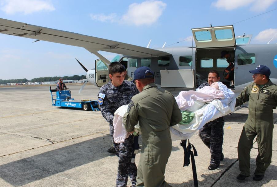 El Ejército de Guatemala informó que a través de la Fuerza Aérea Guatemalteca la atleta fue trasladada desde Poptún hacia la capital.