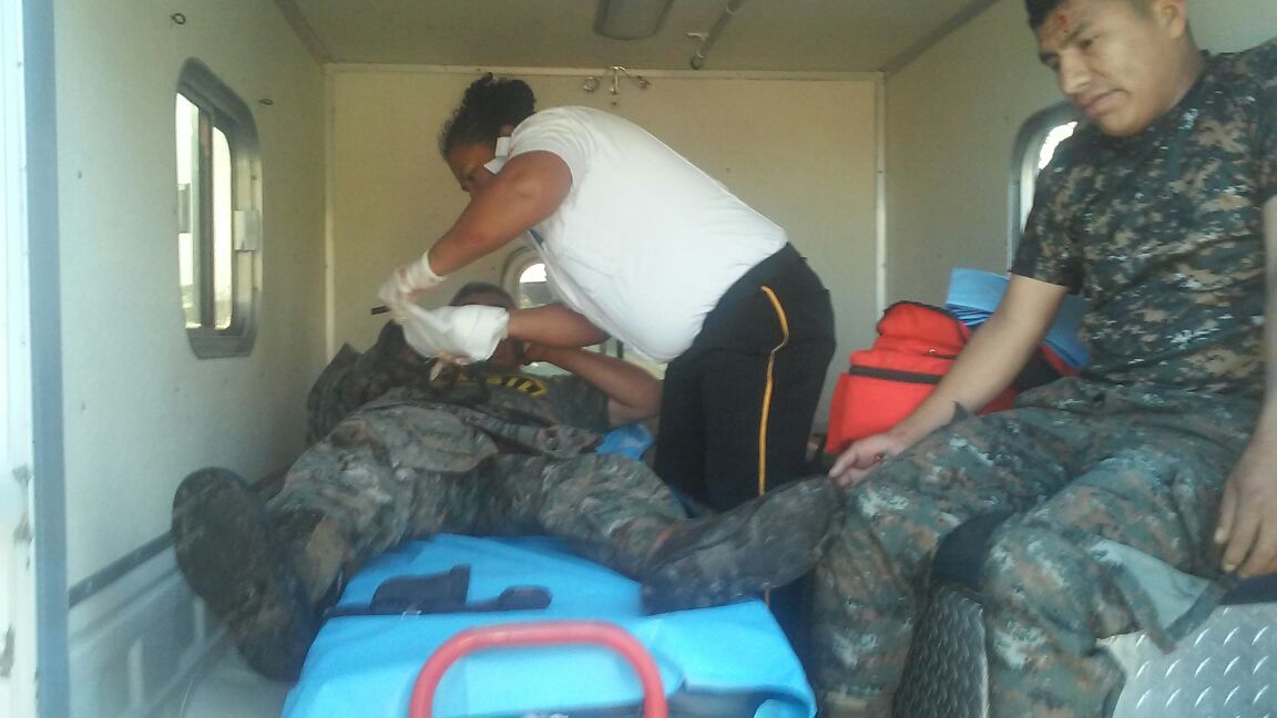 Indicaron que en el picop transportaba raciones alimenticias y otros accesorios para los destacamentos de El Naranjo, Tigrillos y Pozo Xan. El vehículo quedó a media calle y se coordina el traslado de ambos efectivos al hospital militar en la ciudad capital.