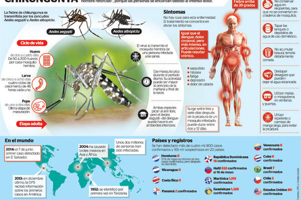 La fiebre chikungunya es ocasionada por un virus que es transmitido por mosquitos contaminados, que pueden infectar a los humanos por medio de la picadura.