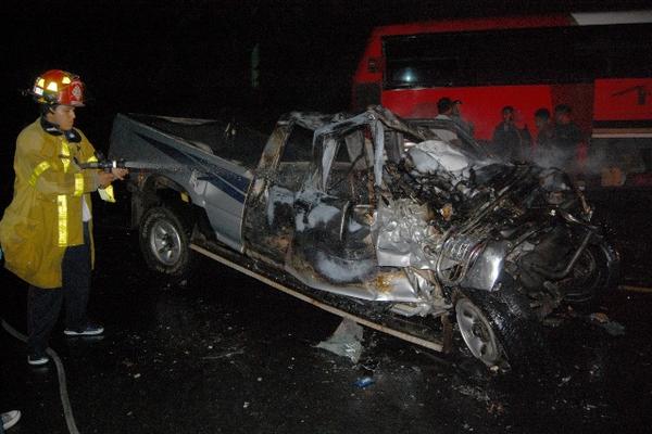Cuatro personas murieron la madrugada del sábado durante un choque entre un autobús pulman y un picop en la carretera hacia la Costa Sur.