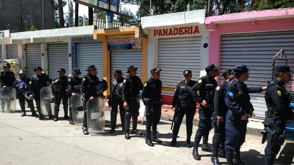 Durante la diligencia en la cabecera de Quetzaltenango, participan agentes de la Policía Nacional Civil (PNC). Varios comerciantes cerraron sus negocios y las autoridades determinaron que algunos locales incluso cuentan con energía eléctrica.
