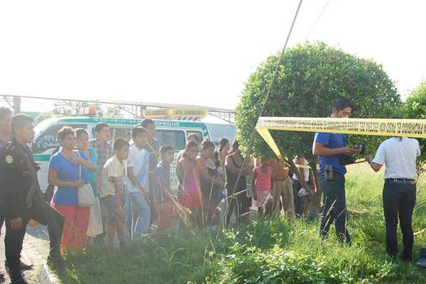 Curiosos observan el cadáver de Cruz Esperanza de León Ralda. (Foto Prensa Libre: Alexánder Coyoy)
