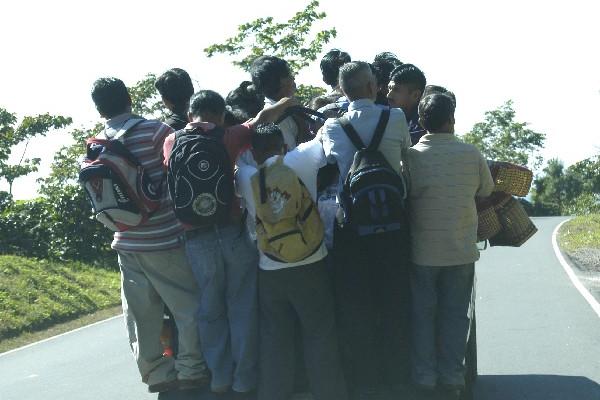 El pasajero Adalberto Rivera dijo que viaja en Transportes Xelajú, de Quetzaltenango a Colomba, y pudo darse cuenta de cómo una de las unidades, con capacidad para 50 personas, llevaba más de cien, algunos de ellos en la parrilla.